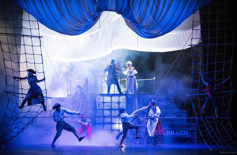 В нашия разлюлян от песни и морски бури кораб ще качим и легендарните жени пирати – Ан Бони и Мери Рийд, сражаващи се за своя дял от плячката. В тази неравна борба е въвлечен и малкият Джим Хокинс, решен да възмъжее и докаже, че смелостта и честта са най-верните другари.